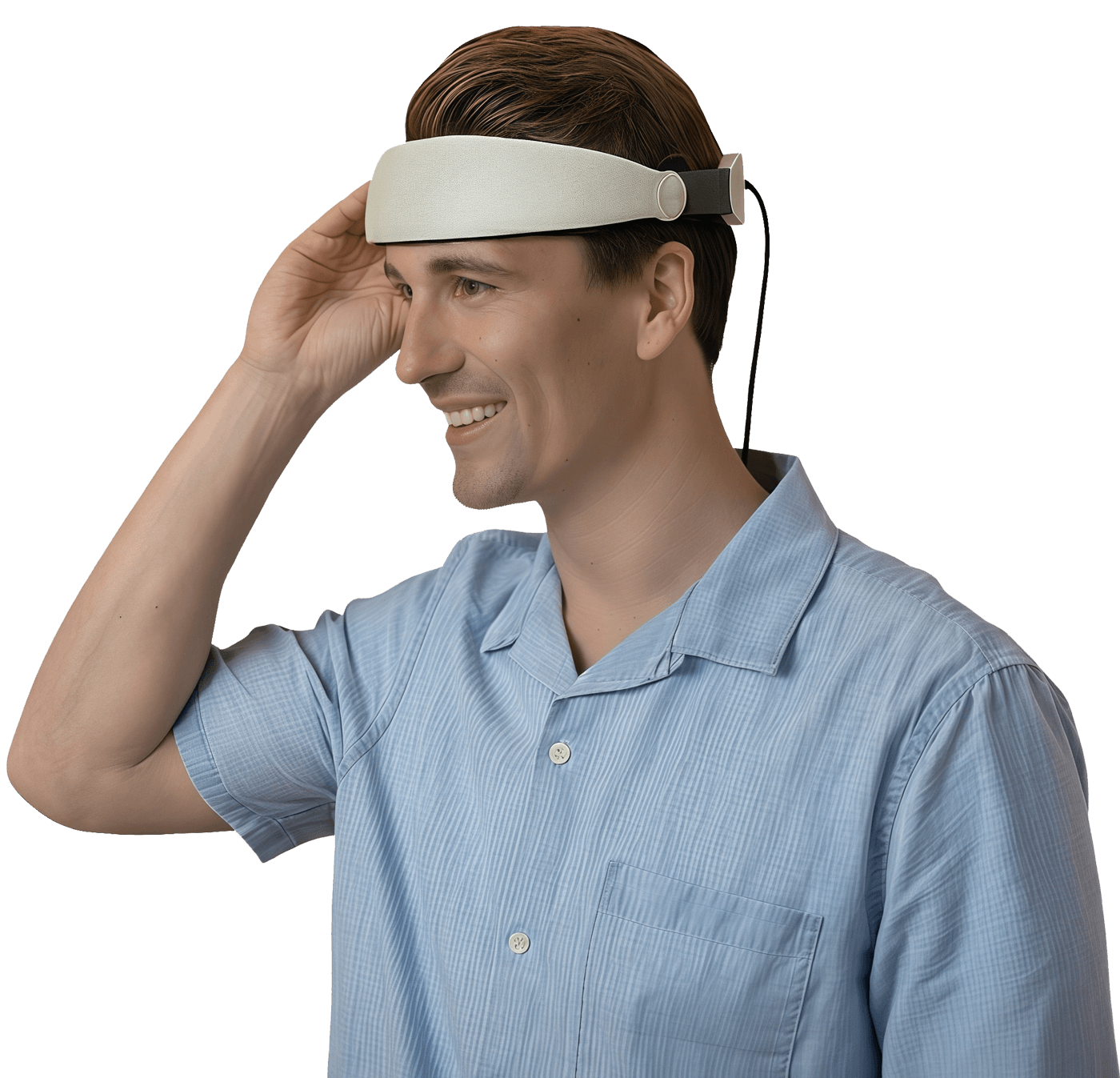1: Place your Growband Pro on your head and adjust for a snug fit.