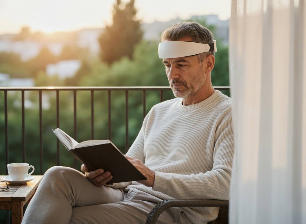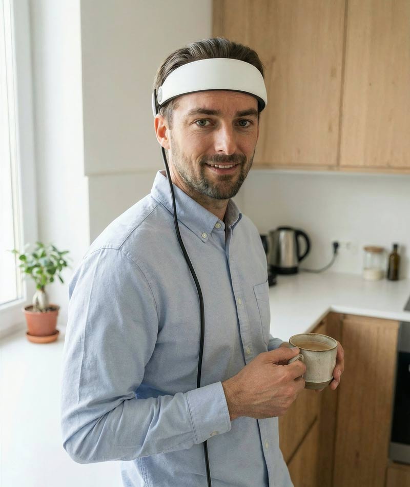 The Growband Pro sits comfortably on your head with the soft inside cushioning and neck support.